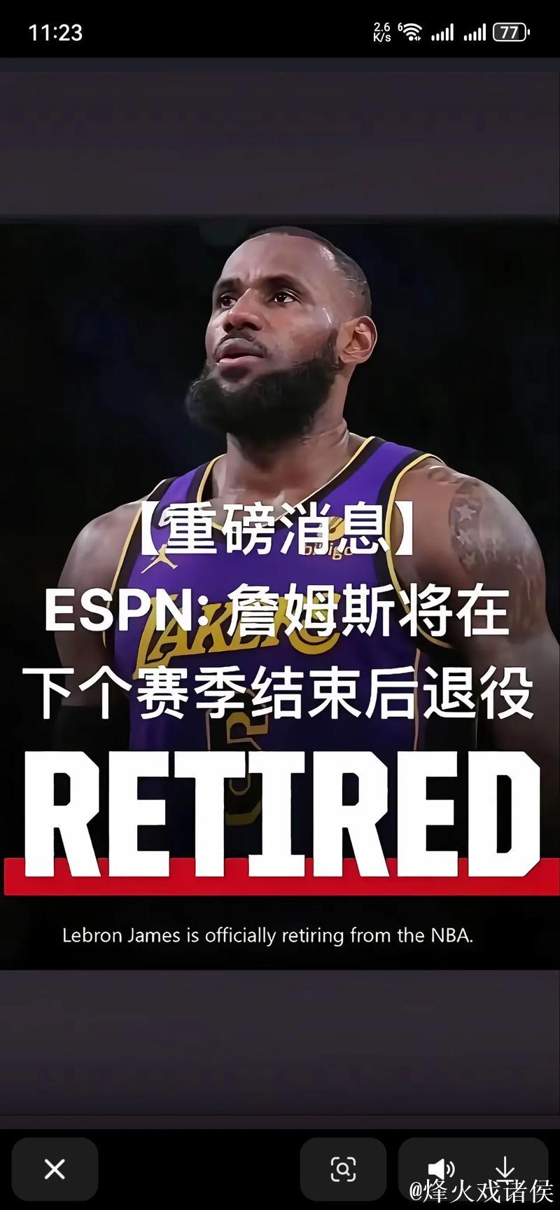 詹姆斯或将在下赛季后退役,名记透露这一重磅消息